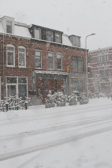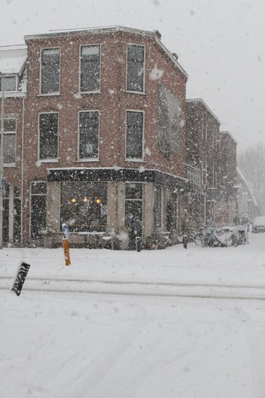 Onder een dun laagje sneeuw lijkt alles ineens zachter. De straatjes net iets stiller, de huizen alsof ze zich even hebben voorgenomen geen haast te hebben. De planners van destijds — en een paar willekeurige Utrechters — zouden er spontaan bij omvallen van verbazing. Niet van de gladheid, niet van de sneeuw, maar van het besef dat dit ooit gewoon goed is bedacht. Menselijk. Ruim. Mooi.